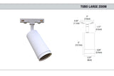 Adjustable Track head options: Tubo Large, Tubo Small and Tubo Large Zoom. Fixed downlight options: Tubo Large and Tubo Small. Various Lens accessories available for each.