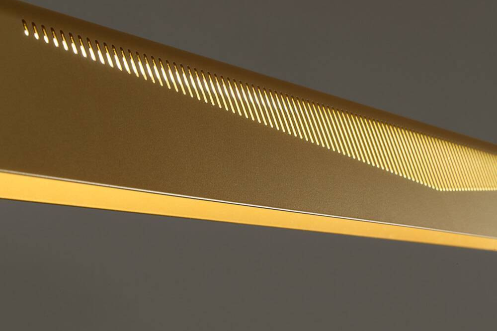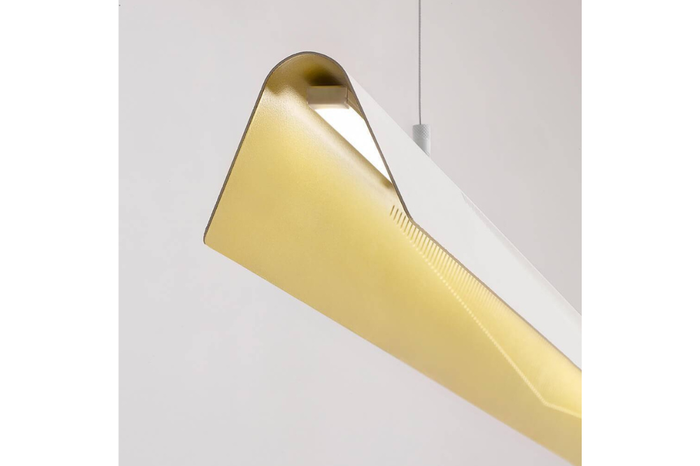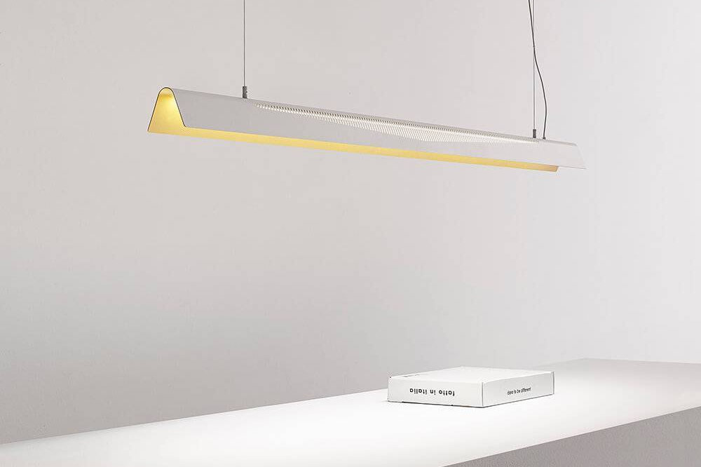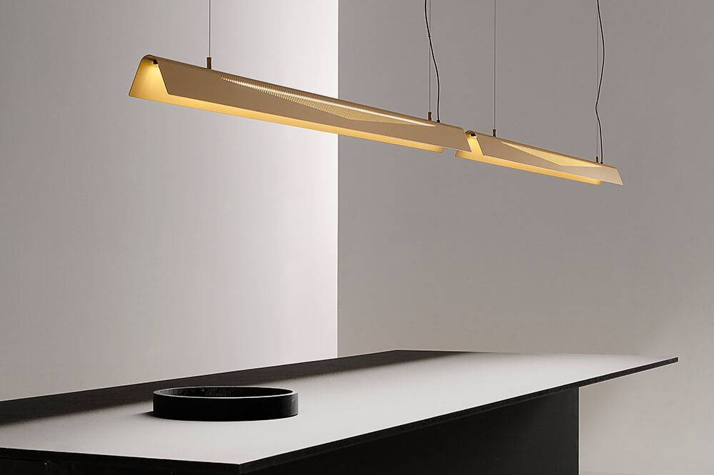 The clean and linear design of filtro suspension lamp is characterized by the presence of slots that play with the light, filtering it and at the same time emphasizing it, so as to give prominence through it to other surrounding elements.