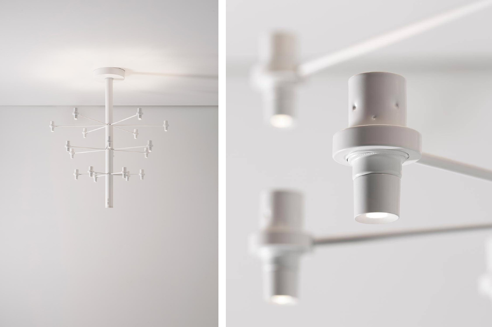 Available in a surface mount or chandelier option, and painted finishes of total white, total black, white and bordeaux.