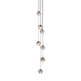 14.7 is composed of single cast-glass pendants on field adjustable 3m steel cables. Glass is available in clear, amber or grey. Each glass is 4"Ø