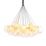28.19 is a cloud of nineteen hand blown glass pendants that attach using a connector to a single cluster canopy.
