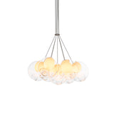 The 28 series pendant(s) resulted from an innovative fabrication process that manipulates both the temperature and the direction of air flow into blown glass. The result is a slightly distorted sphere with an interior landscape of satellite shapes, including an opaque milk glass diffuser that houses either a low-voltage xenon or LED lamp.