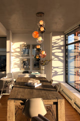 28.7 pendant light is a seven blown glass shades on adjustable 3m coaxial cable.
