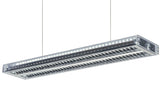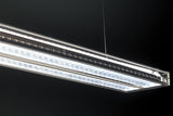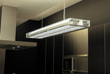 The Ice pendant's transparency makes it intriguing aesthetically and technically. Fixture is 47"L x 9"W x 2"H and comes with 60" adjustable suspension cables.