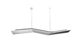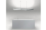 Clean lined asymmetric suspension fixture with indirect light distribution. The Ketamina Suspension is ideal for residential lighting, reception areas, hotels, offices and meeting rooms. Technopolyer ceiling canopy and steel suspension cables allow the suspension to be mounted off centre by use of a decentralizing support. Double circuit switching available.