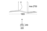 The Ketamina is 1800mm x 220mm (70.8" x 8.6") with a max. suspension of 2750mm (108"). the light source is LED and is available in 2 colour temperatures.