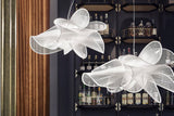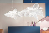 The LED source can be easily and quickly changed thanks to the exclusive magnetic hanging system. White texture printed on transparent polymers, are elements that combine to create refined, contemporary design. The iconic crystal drop detail enriches the lamp’s surface and gives balance to the asymmetrical wings, just as the designer desired.
