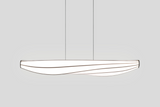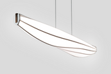 The appreciation and beauty of a well-designed boat is what initially inspired the Lenis fixture; the form is created by bended wood stringers over a series of bulkheads and covered in stretchy white fabric. The organic and sculptural structure deviates from mostly rectilinear forms and the balance between the curved fluidity of its lines and the twisting movement is achieved.