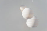 Using custom-made entirely white corrugated cardboard, Scraplights white shades abstract and elevate the layered cardboard aesthetic that Graypants has been carefully evolving since their beginning. This radical departure from the traditional Scraplights line is precision cut by advanced machinery, assembled by hand using non-toxic adhesive, and treated with a non-toxic fire retardant coating.