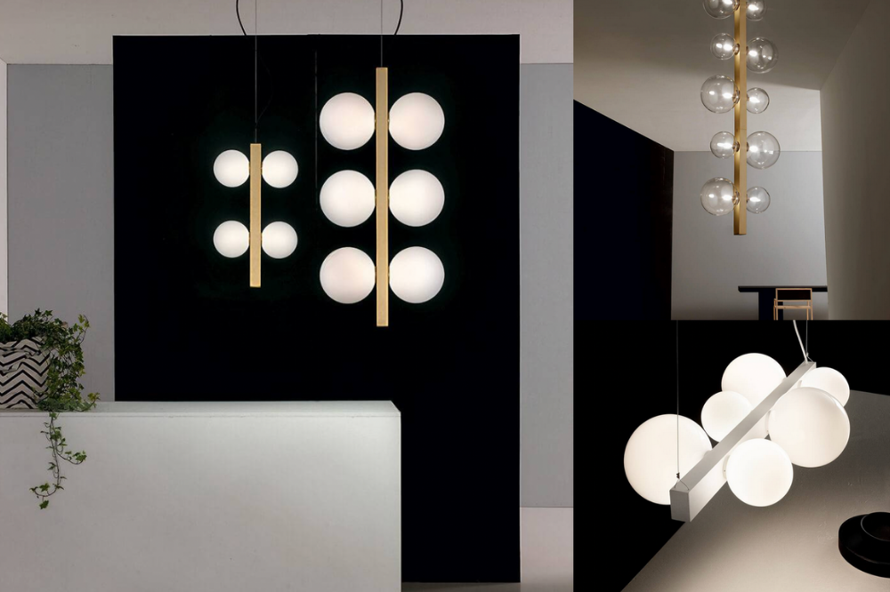 Through the craftsmanship of the glass, the ICS pendant luminaire, releases a stylistic tradition that grants elegance and modernity. The natural materials combined with the harmonious style of blown glass spheres, apparently suspended in the void.