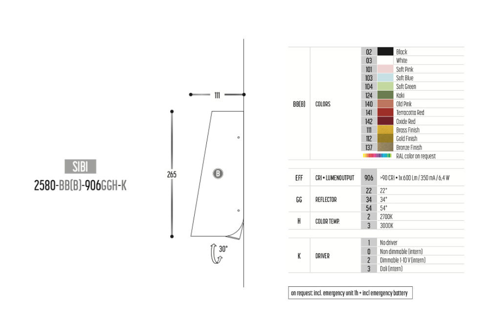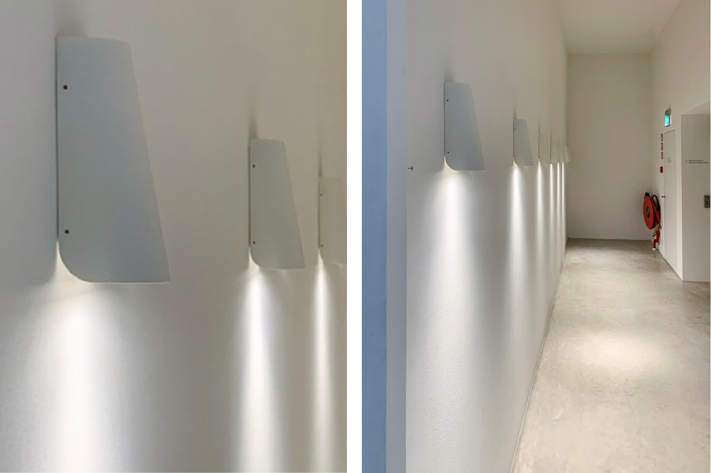 Sibi is a solid wrapped form, that creates a wash of down light. Fixture rotates on wall 30º which is an optional 'fun' effect to apply to your lighting design!