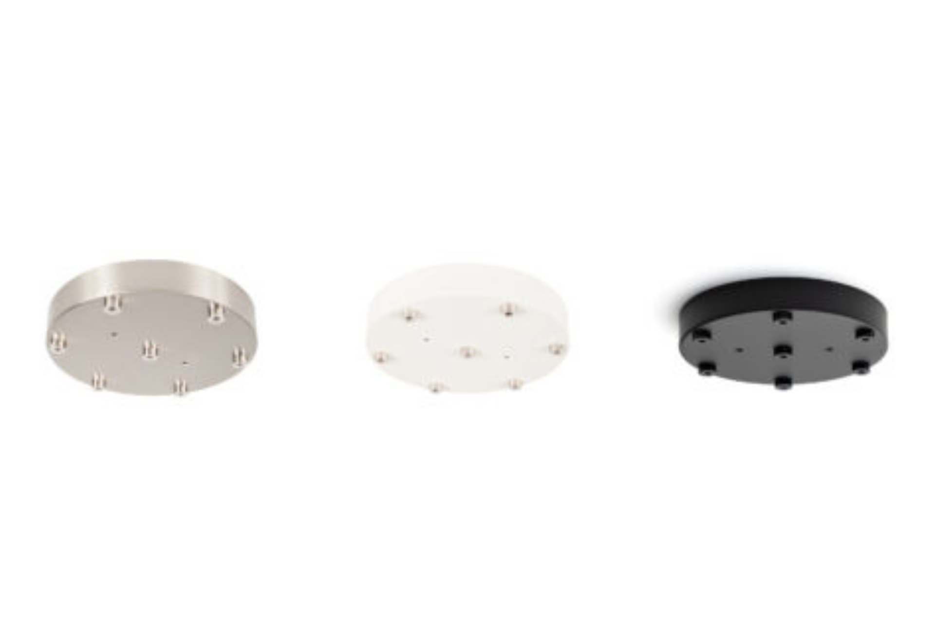 Canopy options of black, white or brushed nickel. Canopy covers standard electrical junction box.