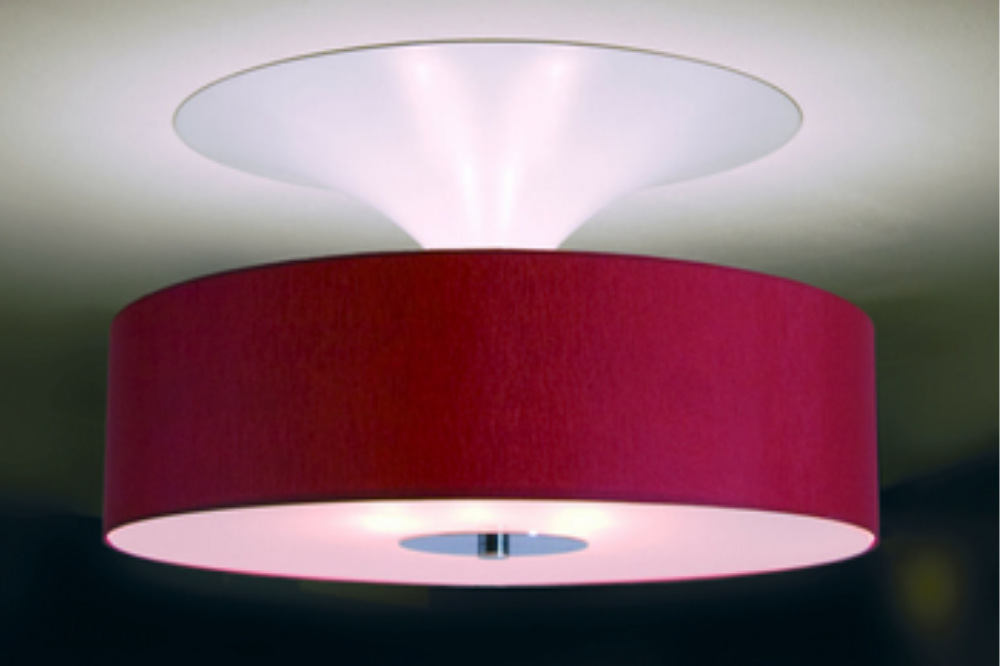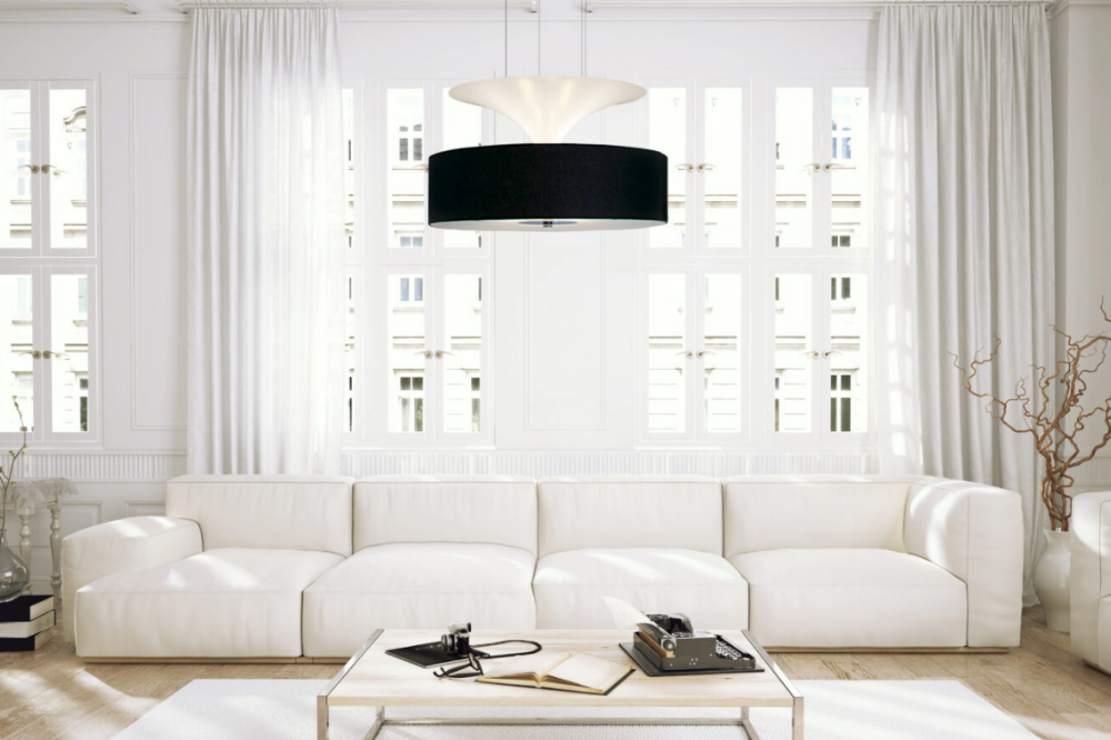 Fabric shade is available in White, Cream, Black, Brown, or Red.